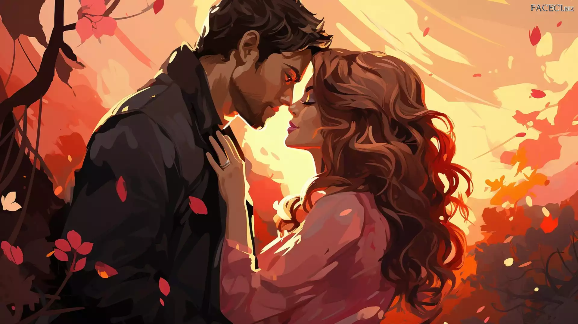 Grafika, Mężczyzna, Jesień, Kobieta, Para, Zakochani - faceci.biz